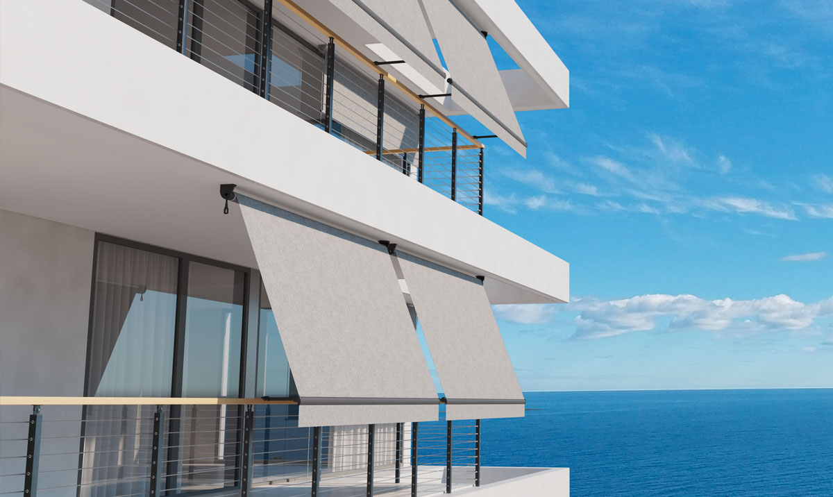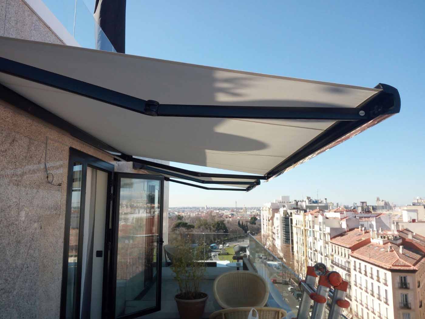 Se aplica en fachadas terrazas o balcones estos toldos se puede regular la altura en la que deseamos que este y la salida, a diferencia de los otros la zona que cubrimos queda libre de obstáculos.